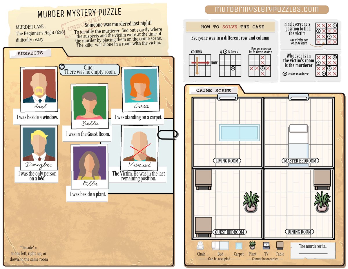 Suicide Or Murdered Crime Scene Home Picture Puzzle Genius Puzzles from gpuzzles.com A murder mystery dinner party is a dinner party where the guests play a murder mystery role playing game. Buzzfeed staff keep up with the latest daily buzz with the buzzfeed daily newsletter! Disocver the best murder myster and escape room subscription boxes perfect for your next game night. Free murder mystery games that are perfect for a murder mystery party or dinner. Can be operated from home. If you thought you knew everything about sex, better think again! It's the most baffling and enigmatic mystery on the internet with promises of "epiphany" if you solve it. Are you up for hosting your own murder mystery party?